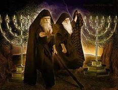 Aquí  en este capítulo estamos a punto del medio de la tribulación. Ya estamos en el terreno judío. El templo judío ha sido establecido y  aunque en incredulidad adoran de nuevo a Dios. Aquí también  aparecen dos testigos  los dos testigos  que ministran durante los primeros tres años y medio  o sea  cuarenta y dos meses, equivalente a 1260 días , y se  muestran vestidos de cilicio.  El cilicio era una vestimenta tosca. Muchos se ceñían con un cinturón de pinchos del cual se auto producían  profundo dolor castigándose ellos mismos por alguna situación trágica. Algunos profetas que anunciaban castigo inminente de Dios se vistieron de cilicio, y estos dos testigos aparentemente vestirán vestiduras así de rusticas, ásperas y dolorosas. Estos dos testigos predicaran a los judíos y tendrán acceso al templo.  Estos testigos como también serán llamados profetas  demostraran el poder de Dios ante los judíos y los gentiles incrédulos, y muchos se salvaran. Ellos mostraran el poder de Dios y devoraran a sus enemigos, tendrán poder sobre las aguas y sobre todo evento natural cuantas veces quieran. Haran grandes milagros y se identifican como Moisés y Elías.  Porque Moisés en Egipto convirtió el agua en sangre y Elias oro por la sequia y por la lluvia y también hizo descender fuego del cielo . Además,  en Malaquías 4:5-6 Dios promete que Elías vendrá de nuevo a ministrar.